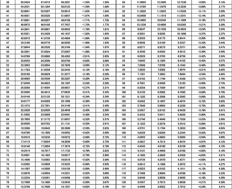 (此為小黑頭100k的阻值表,如需其他電阻器的阻值請聯系我們源林電子)