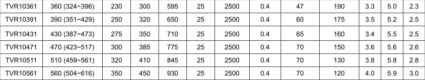 壓敏電阻片徑: Φ10mm 標稱壓敏電壓(@1mADC): 360V(324~396)