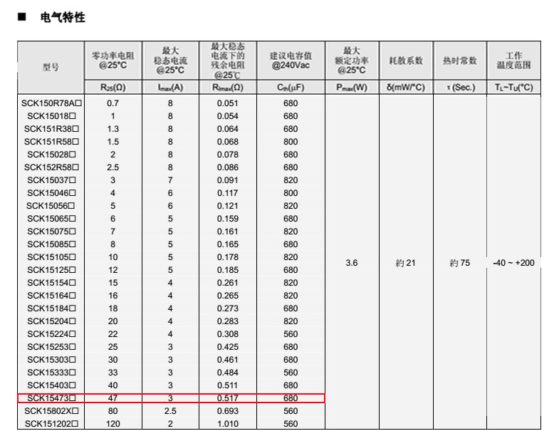 熱敏電阻型號: