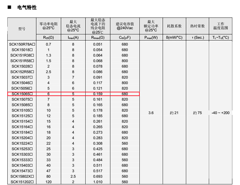 熱敏電阻型號: