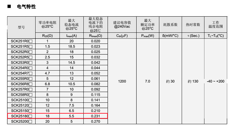熱敏電阻: VT 熱敏電阻型號: SCK25120MSY 熱敏電阻片徑: Φ25mm 零功率電阻@25℃: 12Ω 工作溫度范圍: -40℃±200℃ 儲存溫度范圍: -40℃±85℃