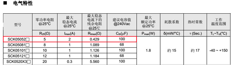 熱敏電阻: VT 熱敏電阻型號: SCK05052MSY 熱敏電阻片徑: Φ5mm 零功率電阻@25℃: 5Ω 工作溫度范圍: -40℃±150℃ 儲存溫度范圍: -40℃±85℃